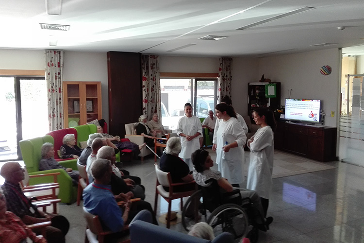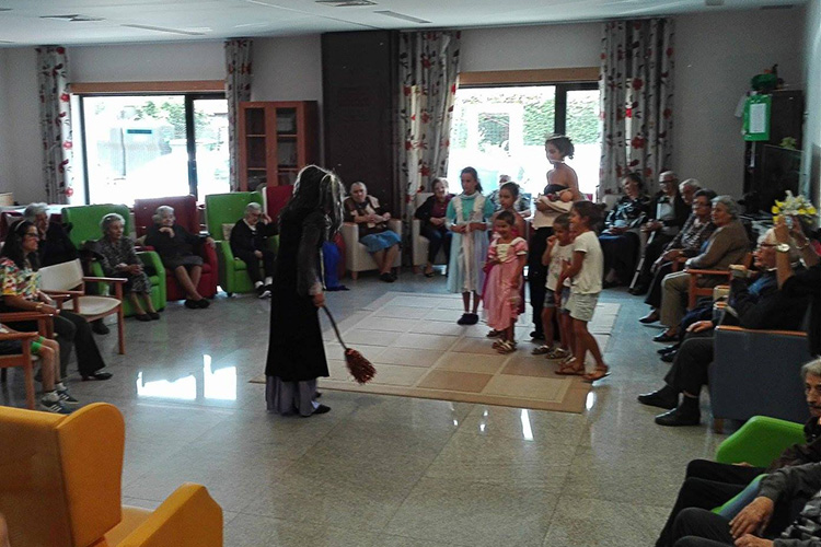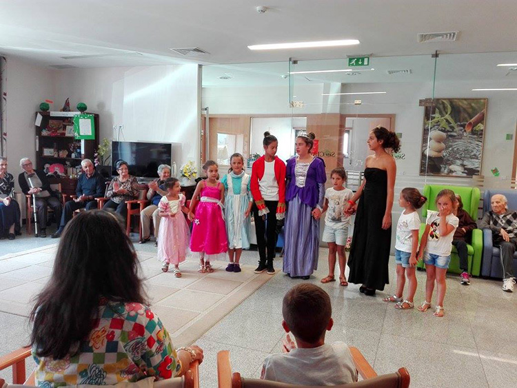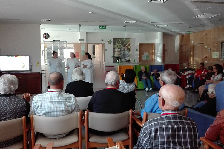 Eram 10 os intervenientes que ao longo da tarde, entre representações de histórias bem conhecidas dos/as clientes – “ A Bela Adormecida” e “Branca de Neve” – uma “aula” de Zumba e bailarico tradicional, animaram os idosos que divertidos e bastante participativos os acolheram.